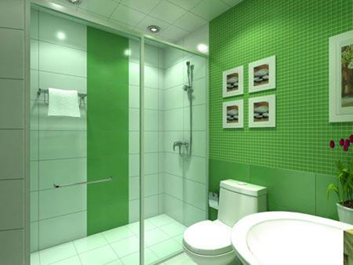 綠色的空間色彩搭配白色的衛(wèi)浴設(shè)施,清新淡雅。風(fēng)景畫的裝飾,花卉的點(diǎn)綴,給衛(wèi)生間蒙上了春的意蘊(yùn)。