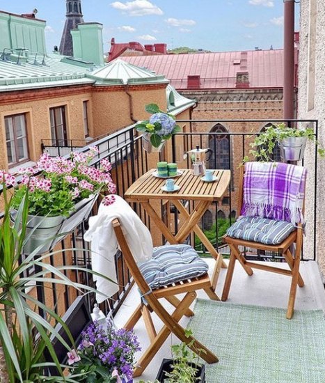 各種花卉爭(zhēng)相斗艷,復(fù)古的實(shí)木桌椅帶你回歸自然,感受自然;清爽的色調(diào)讓生活變得簡(jiǎn)單真實(shí),隨性自在,悠閑自得。這種小清新的陽臺(tái),不管是欣賞風(fēng)景還是周末打發(fā)閑暇時(shí)間,都是不錯(cuò)的選擇地點(diǎn)。