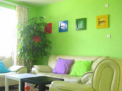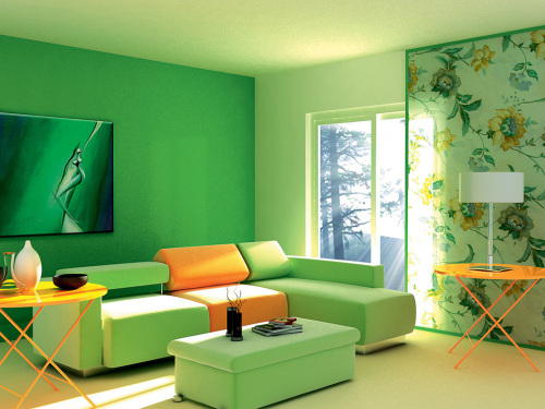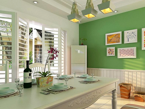 整個(gè)客廳內(nèi)都以綠色為基調(diào),橙黃色的桌子和沙發(fā)不僅不會(huì)讓人覺得格格不入,反而成為客廳內(nèi)的一大亮點(diǎn)。濃濃的綠意充斥著整個(gè)室內(nèi),柔柔的陽光從窗外射入,照射著淡綠色、橙黃色的沙發(fā),帶來絲絲春意,簡(jiǎn)約而不單調(diào)。