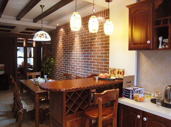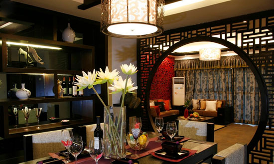 中式田園風(fēng)格的另一特點(diǎn)即是對于傳統(tǒng)的居室設(shè)計很注重空間的層次感。設(shè)計時根據(jù)居住人數(shù)的不同,對整間房屋做出了空間功能性的劃分,但是并非選用打隔斷來完成,而是采用“啞口”或者是簡約化的“博古架”開劃分區(qū)域。在個別需要隔絕視線的地方,可選擇用實(shí)木制作而成屏風(fēng)或者窗欞來分隔兩個空間區(qū)域,選擇這樣的方式,不僅方便,而且使得空間活動范圍更為靈活,更具層次之感。
